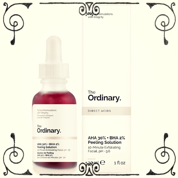 The ORDINARY AHA 30% + BHA 2% Peeling Solution contains 30% AHA (glycolic acid) and 2% BHA (salicylic acid), hyaluronic acid, vitamin B5, black carrot and Tasmanian Pepperberry.