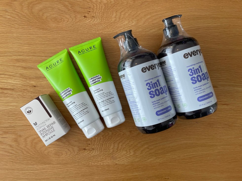 I made a small order from iHerb, which includes an anti-aging serum produced from snail extract, a natural lemon grass scented shampoo for me, and a natural shampoo + bath soap for my kids.